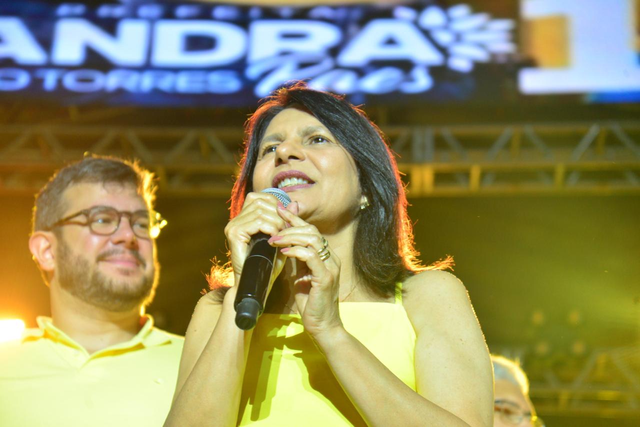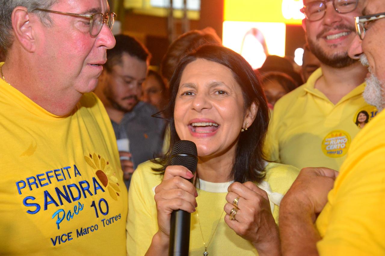 Bastante emocionada, em meio ao arrastão que lotou as ruas da cidade, Sandra Paes agradeceu a confiança dos canhotinhenses, que, segundo ela, desde o início da campanha demonstraram desejo pela continuidade.