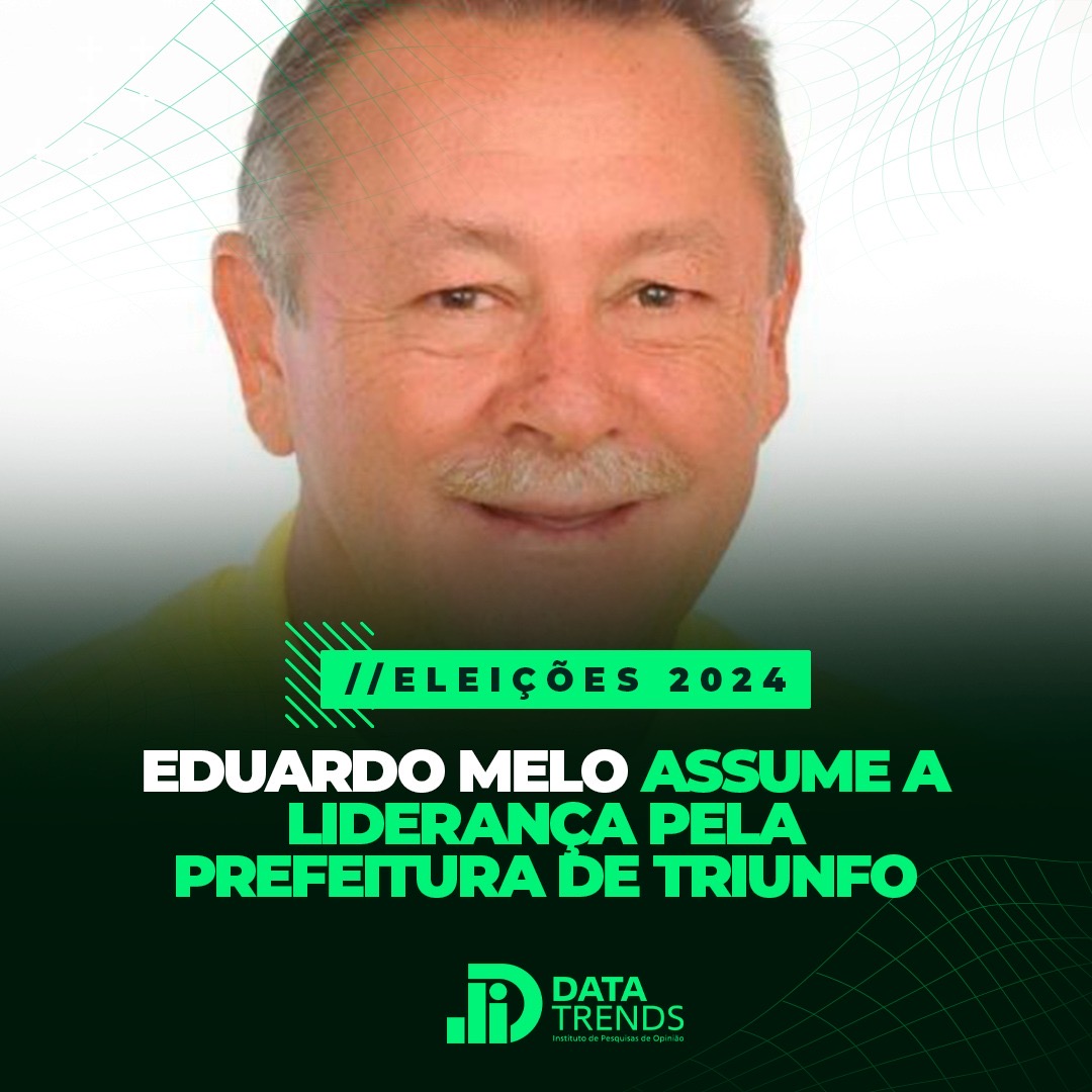 Pesquisa do Instituto DataTrends publicada nesta terça-feira (2) mostra o ex-prefeito Eduardo Melo na liderança pela Prefeitura de Triunfo, no Sertão de Pernambuco.