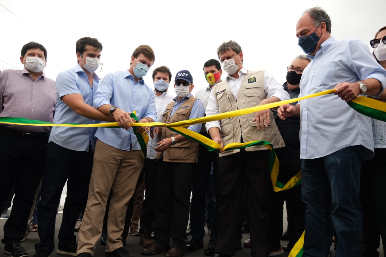 Um novo marco na mobilidade de Petrolina foi inaugurado nesta segunda-feira (14). O prefeito Miguel Coelho e o ministro da Infraestrutura, Tarcísio Freitas, entregaram o viaduto da Avenida Sete de Setembro. A obra, que integra um projeto federal e municipal de mobilidade para diversos bairros, recebeu R$ 25 milhões e foi liberada para o trânsito de veículos da cidade.