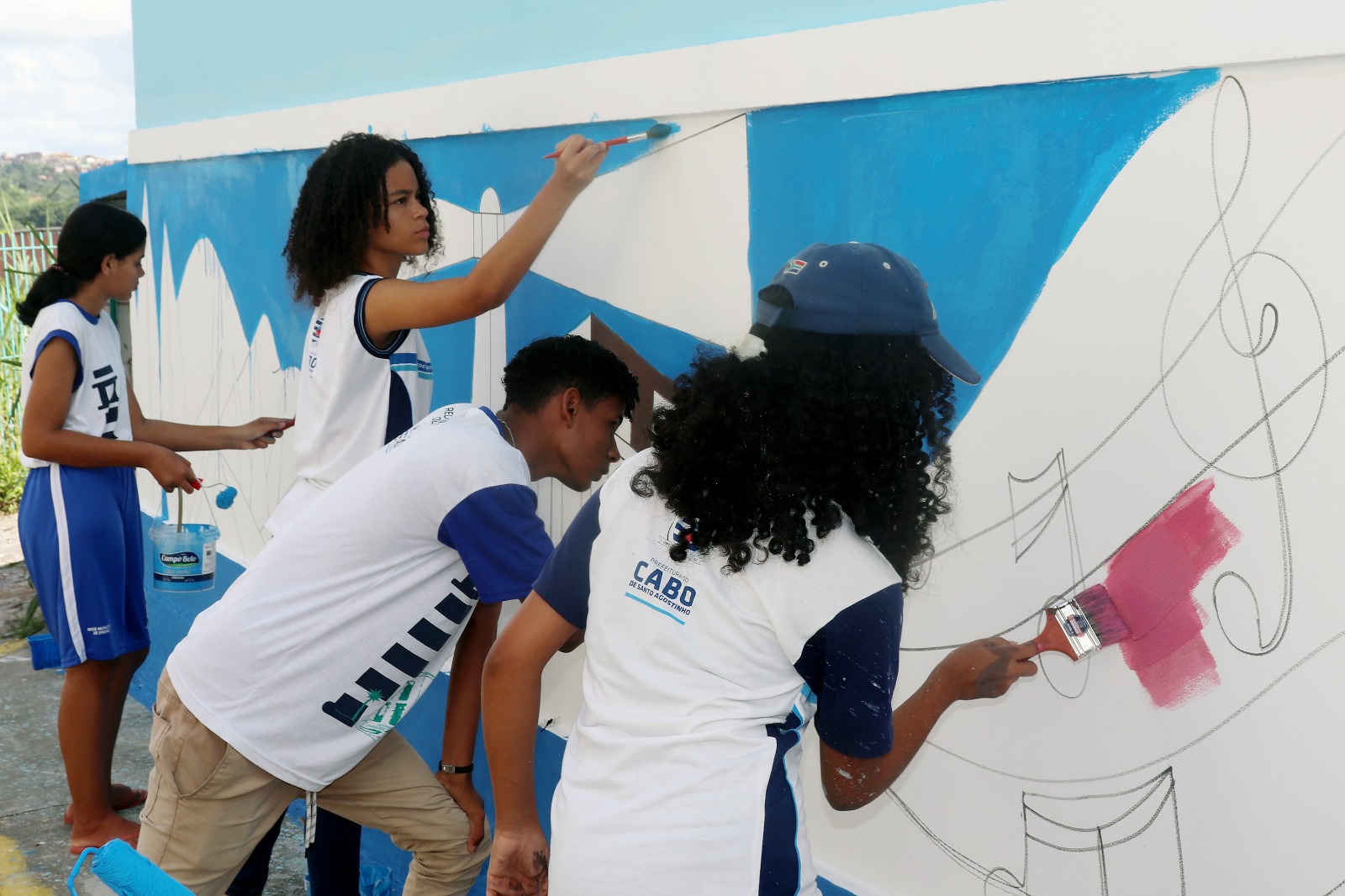 Alunos da rede municipal de ensino participaram da pintura artística na lateral do Mercado das Artes, localizado no prédio do antigo Mercado de Farinha. A ação é fruto do projeto de revitalização do prédio, que deve ser inaugurado na próxima semana.