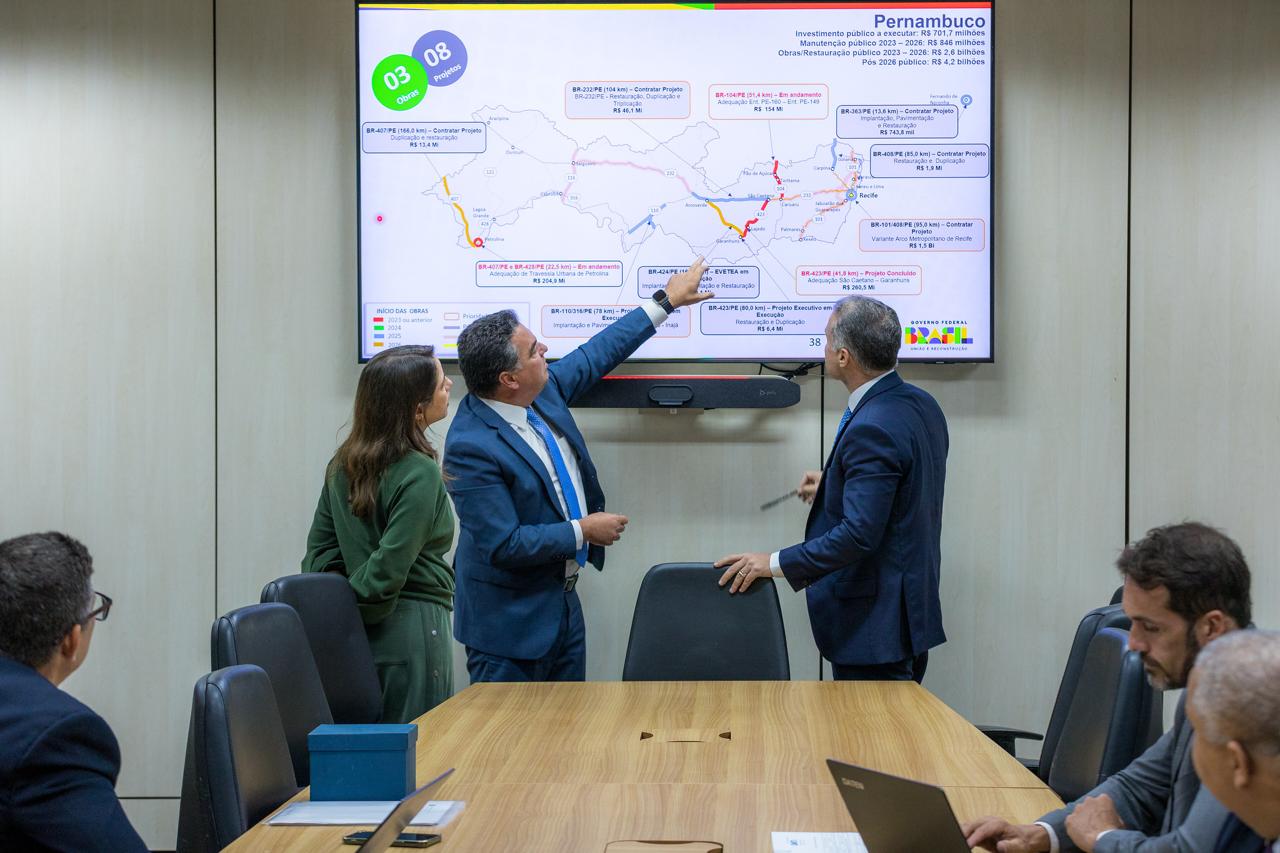 “Estive com o ministro Renan em uma reunião e discutimos sobre as estradas de Pernambuco, que estamos restaurando para melhorar a mobilidade no Estado, além das ações de requalificação das estradas federais em Pernambuco que estão sendo feitas. Tratamos também sobre as obras executadas em conjunto pelas gestões estadual e federal, como a BR-104 e o Arco Metropolitano. Estamos trabalhando para fazer o Estado crescer sem deixar ninguém para trás. Agradeço ao ministro e toda a sua equipe pela parceria”, destacou a governadora Raquel Lyra. O secretário da Casa Civil de Pernambuco, Túlio Vilaça, também acompanhou a reunião.