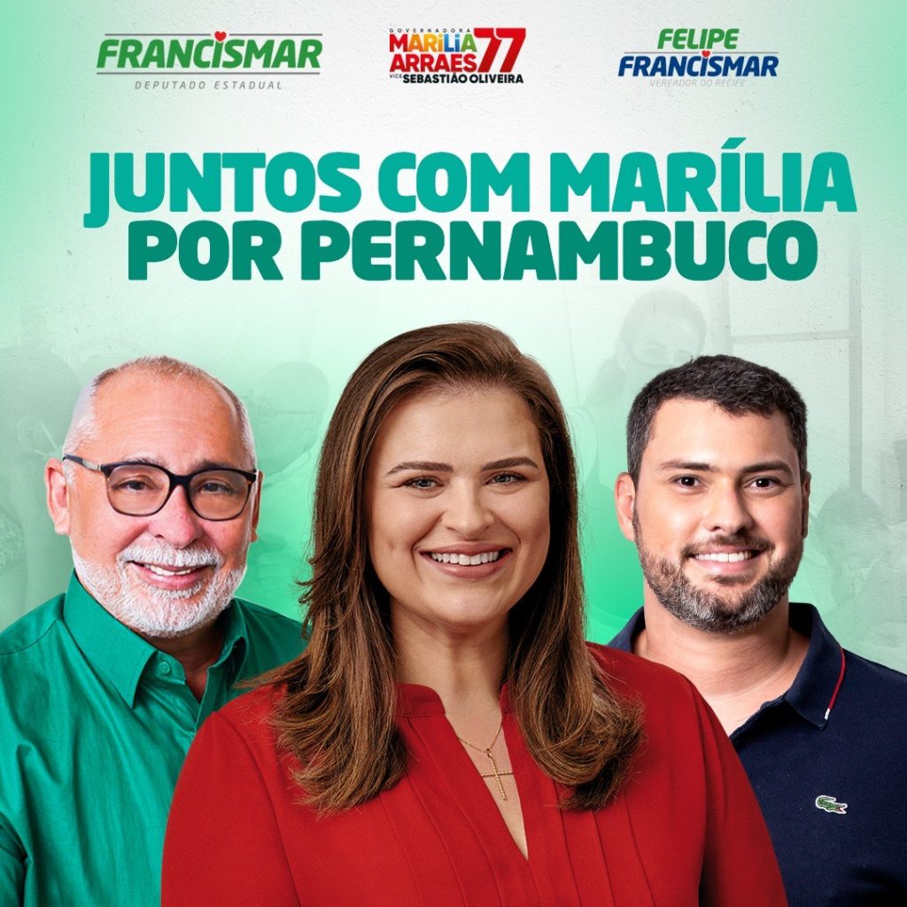 O deputado estadual Francismar Pontes, reeleito como uma expressiva votação na Capital e RMR, e o vereador do Recife, Felipe Francismar, declaram apoio à candidatura de Marília Arraes para governadora de Pernambuco. “Este é o momento de unir forças e buscar o melhor para o nosso Estado. Diante do cenário político que estamos vivendo, enxergamos que Marília é a melhor opção para dar continuidade ao crescimento de Pernambuco e à luta pela melhoria de vida dos cidadãos pernambucanos”, confirmou o vereador Felipe Francismar.