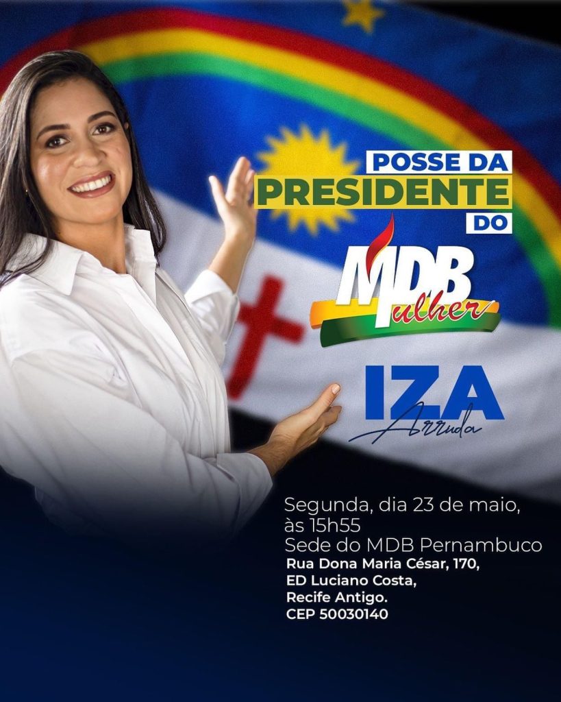 A pré-candidata a deputada federal Iza Arruda assume nesta segunda-feira a presidência estadual do MDB Mulher, o ato acontece na sede do partido a partir das 15 horas e 55 minutos. Com uma trajetória em defesa das mulheres, Iza terá a missão de aperfeiçoar a discussão do seu partido sobre políticas públicas voltadas para a causa feminina.