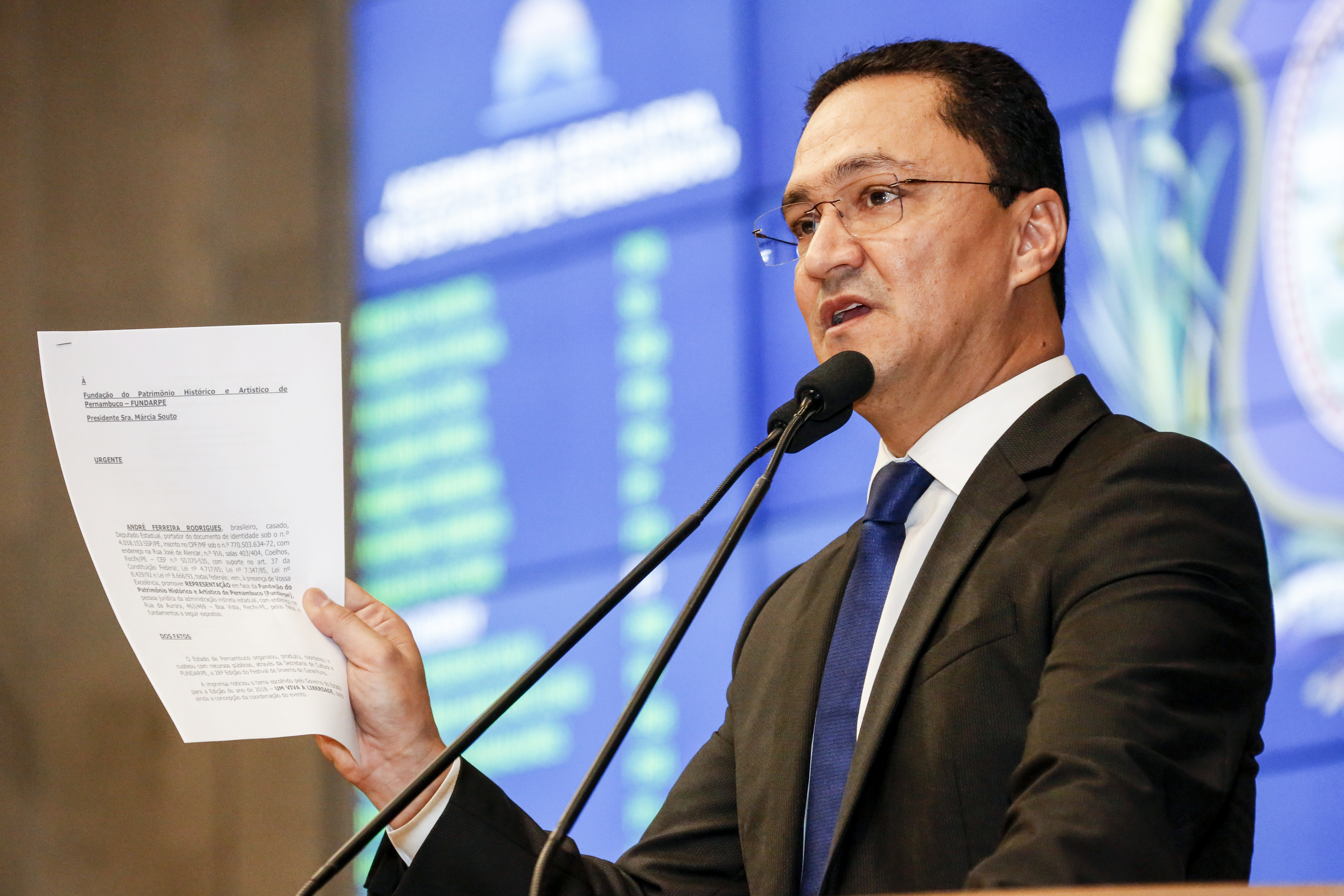 O deputado estadual e presidente estadual do PSC, André Ferreira, usou a tribuna da Assembleia Legislativa, nesta quarta-feira (1º), para anunciar que deu entrada no Ministério Público de Pernambuco em uma ação contra o Governo do Estado para que ele suspenda o pagamento do cachê do artista Johnny Hooker. O parlamentar também solicitou da Fundarpe, além da suspensão do pagamento, “a cópia integral do processo administrativo de contratação do artista”.