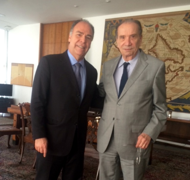 Brasília, 11/07/18 – Atento ao setor de fruticultura irrigada, o senador Fernando Bezerra Coelho (MDB-PE) foi recebido hoje (11) pelo ministro das Relações Exteriores (MRE), Aloysio Nunes, no Palácio do Itamaraty, em Brasília. Durante a audiência, o vice-líder do governo no Senado fez um apelo para que o chanceler reforce, junto a autoridades do Mercosul e da Comunidade Europeia, a necessidade de extinção do imposto (Import Duty) incidente sobre a exportação de uva brasileira.